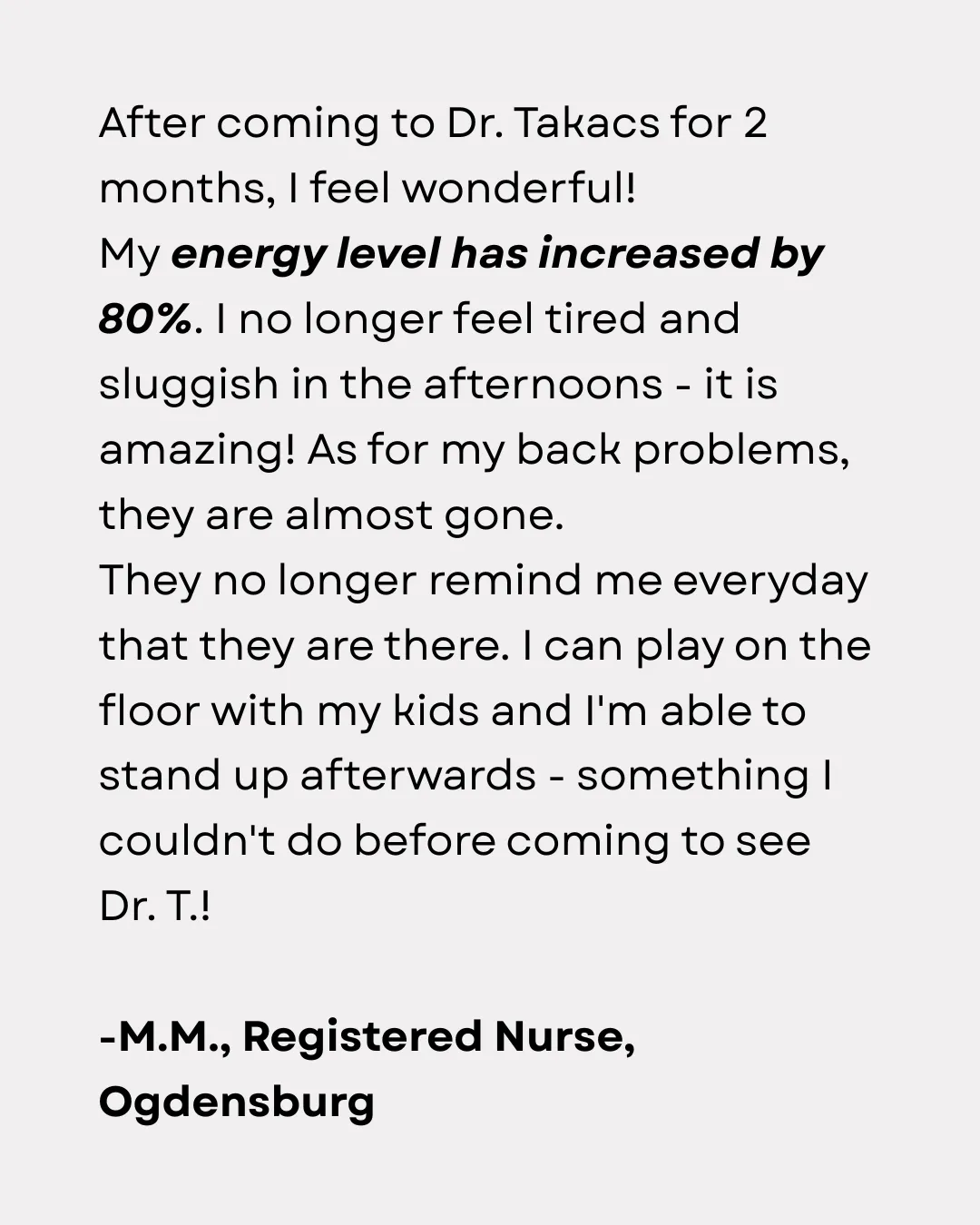 Yes. Dr. M. Helena Takacs, D.C., has over 40 years of experience treating spinal and extremity pain - back, neck, knee, shoulder, hips, migraines, sports injuries, and more.