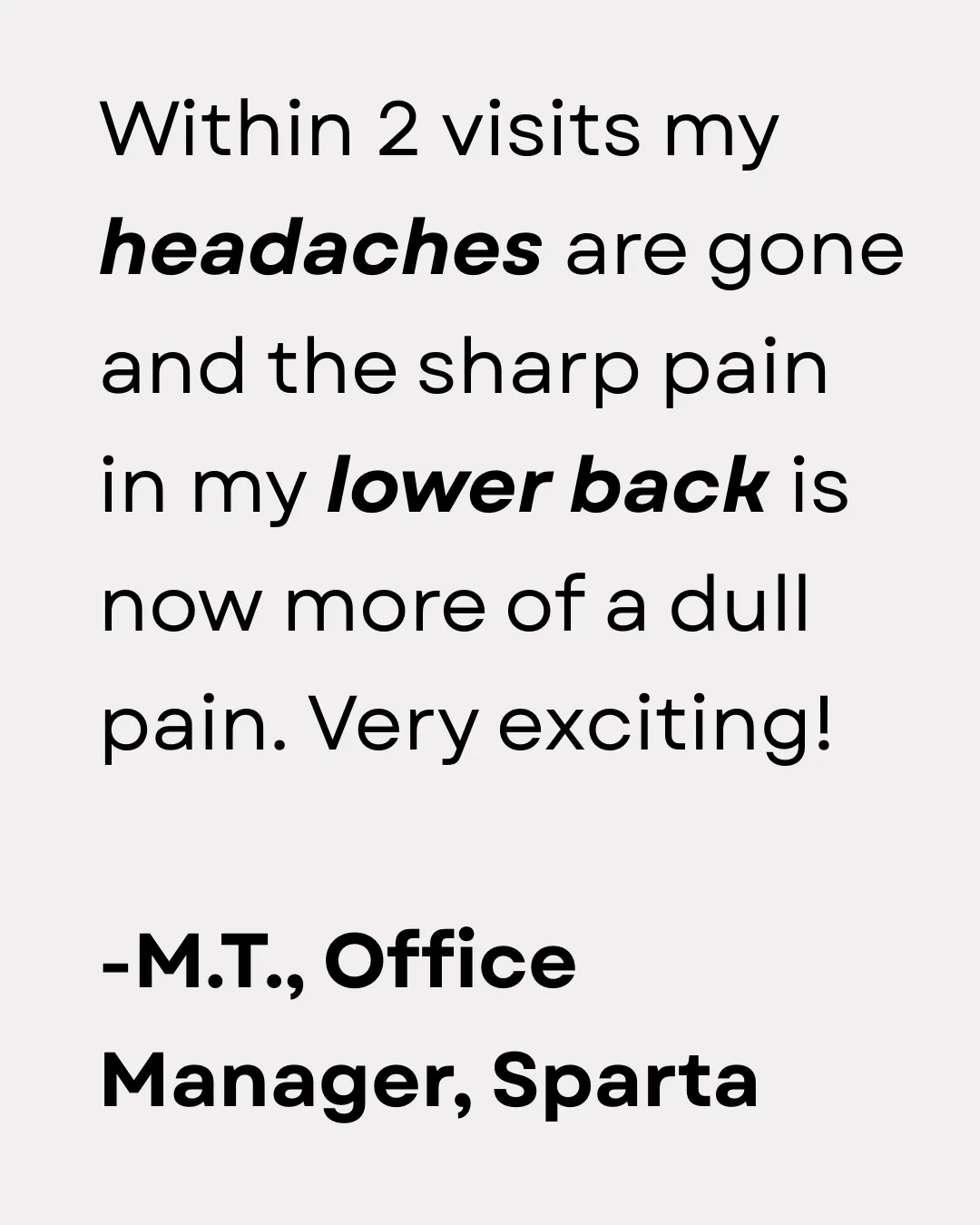 Many patients feel relief quickly, while others see improvement over several visits. The doctor will give you a personalized plan once we understand your condition.